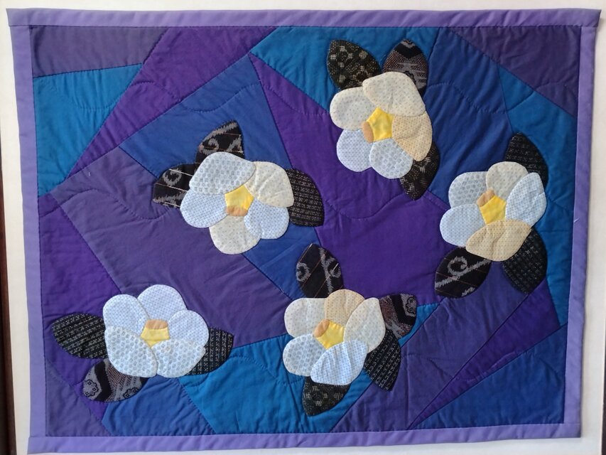 パッチワーク アップリケ キルト タぺストリー 【白椿】 壁掛け