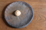 薪窯で焼いた一点ものの、窯変の丸皿です。