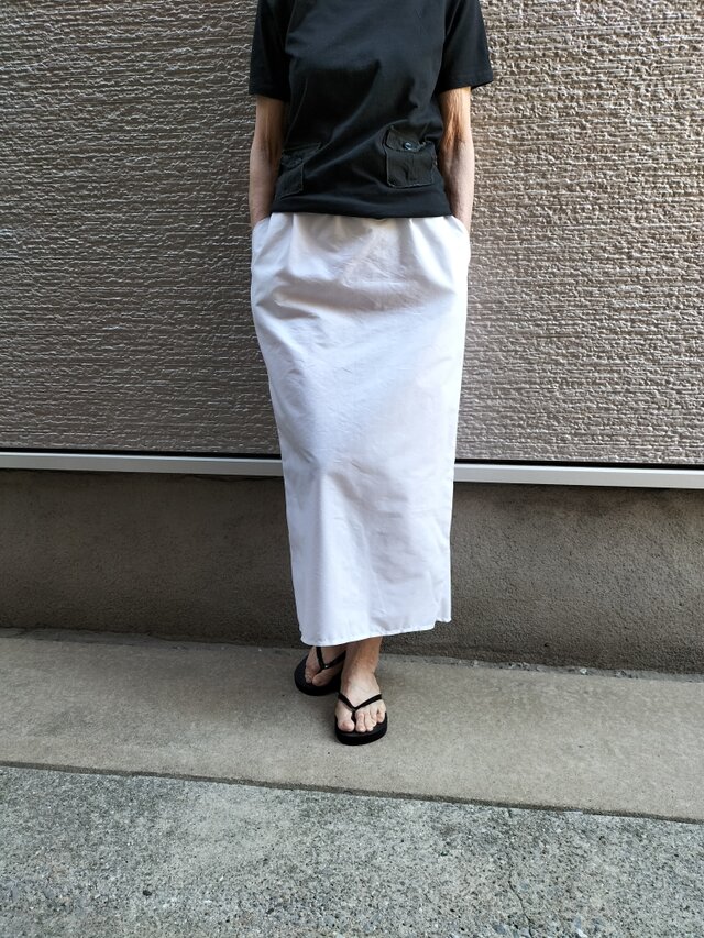 オールウエストゴムの楽ちんなリネンのタイトスカートです。
