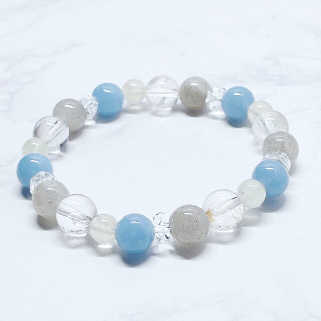 ✦転機・手放し・新しい可能性◎ 天然石ブレスレット|エンジェライト・リビアングラス・ラブラドライト・水晶 No.877