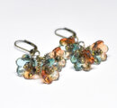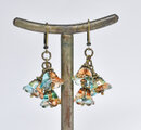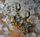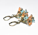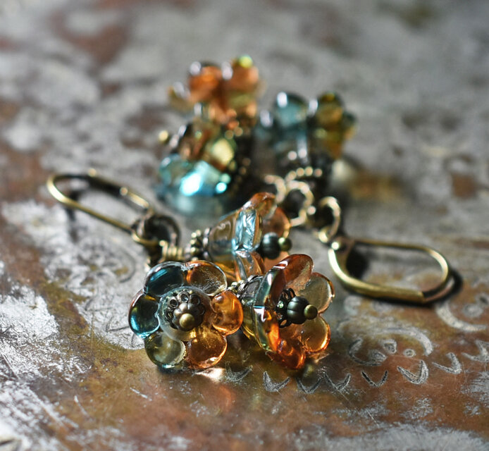 オレンジ×ナイトブルー3つのお花japanヴィンテージビーズのピアス