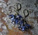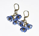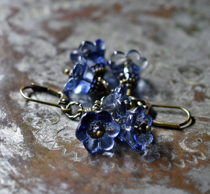 ダークブルー3つのお花japanヴィンテージビーズのピアス