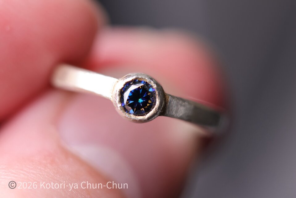 【人類の叡智の結晶】最強の人工宝石 ネイビーブルーモアサナイト・シルバーリング【紺火】