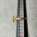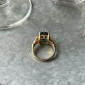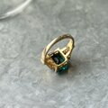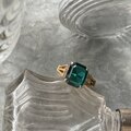 深いエメラルドグリーンのカットグラスが印象的なゴールドトーンリング。