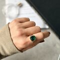 現代のさまざまなシーンの着こなしにグリーンのアクセントが映え、シンプル、カジュアル、エレガント、ドレススタイル、モードなスタイルなどにクラシックで華やかな雰囲気を纏わせる素敵なヴィンテージリングです。