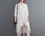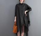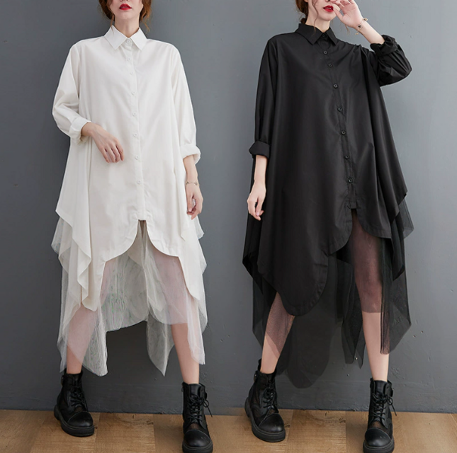 ★ビッグサイズ レディース 長袖 シャツワンピース ゆったりシルエット 体型カバー 着痩せ 通勤 おしゃれ春夏
