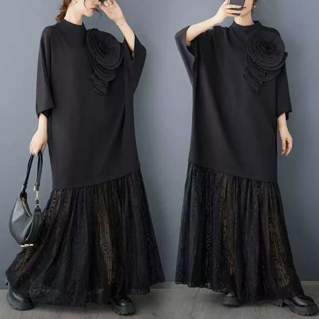 ★ビッグサイズ レディース 半袖 丸襟 ワンピース ゆったりシルエット 体型カバー 着痩せ 通勤 おしゃれ春夏