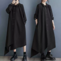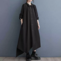 ★ビッグサイズ シャツワンピース 丸襟 ワンピース ゆったりシルエット 体型カバー 着痩せ 通勤 おしゃれ春夏