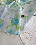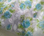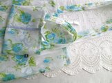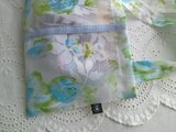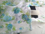 水彩画のような花々が描かれた生地は