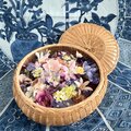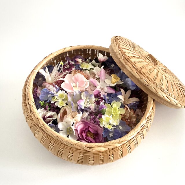 ◇蓋付きの籠に、優しい色のお花をたくさんの種類集めました
