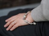 重厚感のある大粒のカレンシルバービーズを組み合わせ、ゴージャスな印象の特大シルバーブレスレットに仕立てました。