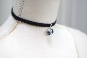 【受注製作】レジンアート ラウンドモチーフとタティングレースとベルベットリボンのチョーカー〈闇を慕いて〉
