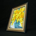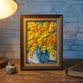 贅沢に重ねられた絵の具が生み出す立体感が、この作品の魅力です。光の当たり具合によって変化する花びらの表情は本物のミモザのような生命力を感じさせ、部屋に春の息吹を運んできます。明るいイエローが心をポジティブにし、見るだけで癒やされる特別な存在です。