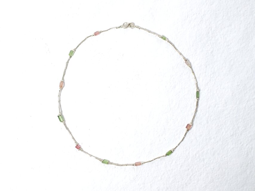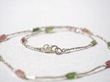 グリーンとピンク、2色のトルマリンを散りばめたシルバーチョーカー