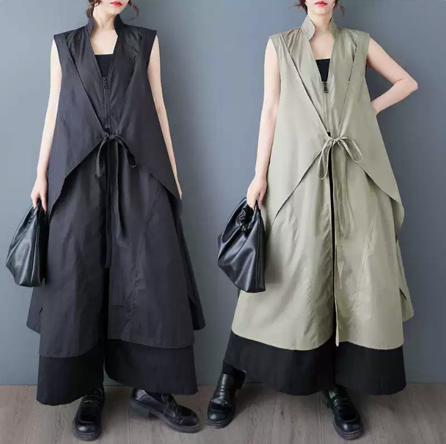 ★レディース ノースリーブワンピース ゆったりシルエット 体型カバー 着痩せ 通勤 おしゃれ 春夏