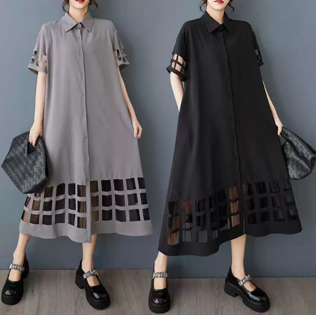 ★ビッグサイズ レディース 半袖 シャツワンピース ゆったりシルエット 体型カバー 着痩せ 通勤 おしゃれ春夏