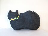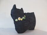 首回りにぐるりとお花モチーフを縫い付けた、かわいらしい猫ちゃんです。