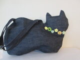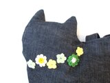 【新作】デニムの猫バッグ ショルダータイプ*お花モチーフ グリーン