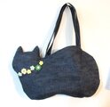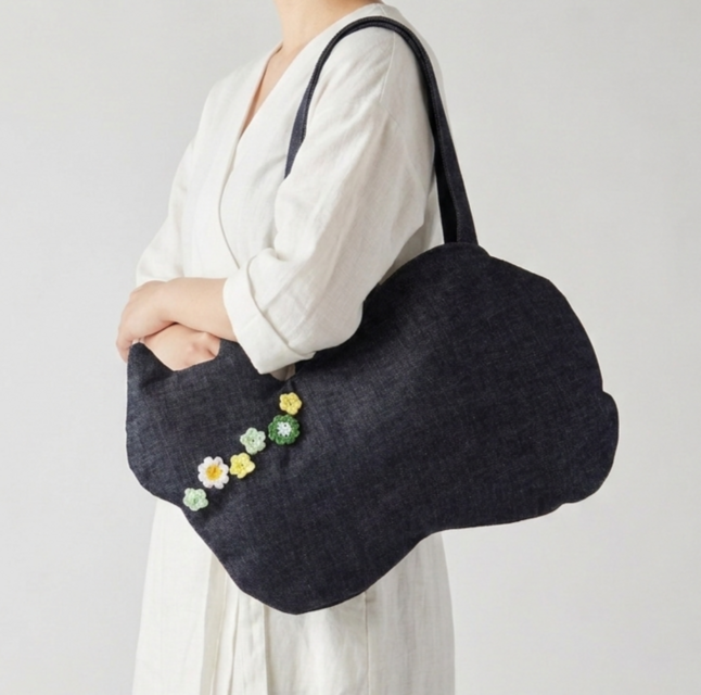 写真のように、肩掛けできるよう、持ち手を通常のネコバッグよりも長く制作しています。