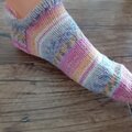 opal毛糸コットンで編んだくるぶし丈のソックスです。