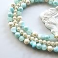 なめらかな光沢を持つ香港ビーズとパールが連なるネックレス。
