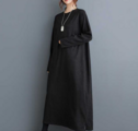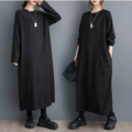 ★ビッグサイズ レディース 長袖 丸襟 ワンピース ゆったりシルエット 体型カバー 着痩せ 通勤 おしゃれ春夏
