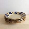 リム部分に飴釉と瑠璃釉を筆でのせて模様にし、全体に透明釉を施しています。釉薬の表情には個体差があります。