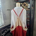 品よくおしゃれに着こなせるおしゃれなレッド×リネンのエプロンをぜひどうぞ。
