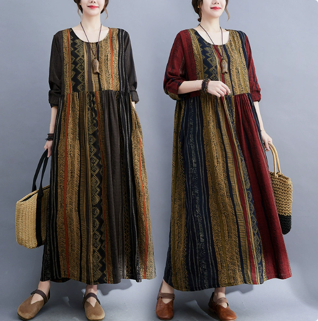 New秋色~花柄.ゆったり長袖ワンピース ロング丈スカート. レトロ 綿 .コットン 春秋★商品を受け取りました。 とてもかわいいワンピースですね。 着られる時期を楽しみにしています。