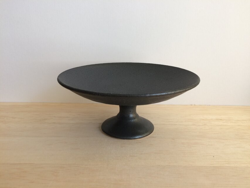 赤土を使用した脚付きの器です。全体に黒マット釉を施しています。