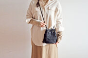 斜め掛けも肩掛けにもできるポシェットは上質な生地の既製品にはない雰囲気にコーディネートしたときのトレンド感も意識したのシルエットもポイントです。