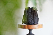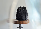 個性的なブラックのフラワーチュール刺繍。