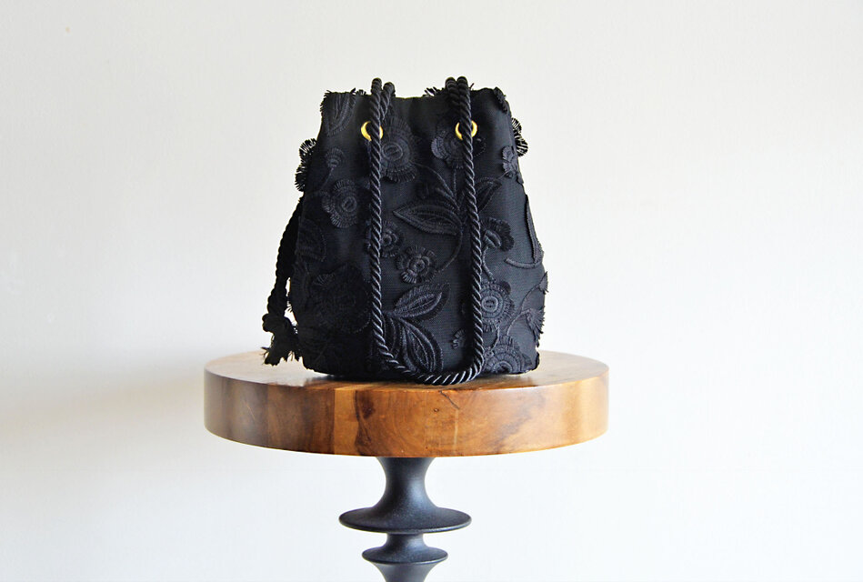 数量限定 フラワーチュール刺繍レース2Wayポシェットマリンバッグ ブラック フォーマルコーデにも◎