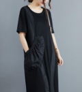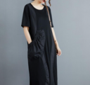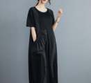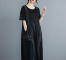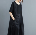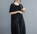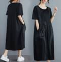 ★ビッグサイズ レディース 半袖 丸襟ワンピース ゆったりシルエット 体型カバー 着痩せ 通勤 おしゃれ春夏