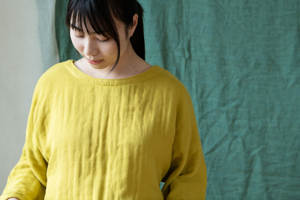 【柚の葉染め】OrganicCotton3重ガーゼ ゆったりプルオーバー