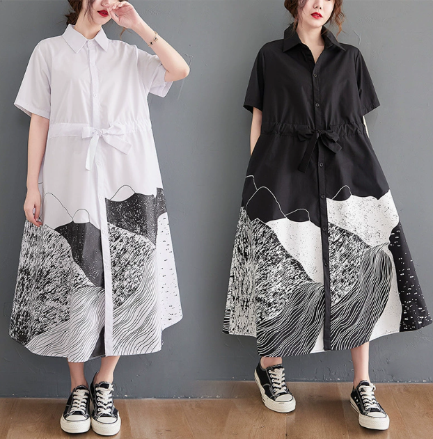 ★ビッグサイズ レディース 半袖 シャツワンピース ゆったりシルエット 体型カバー 着痩せ 通勤 おしゃれ春夏