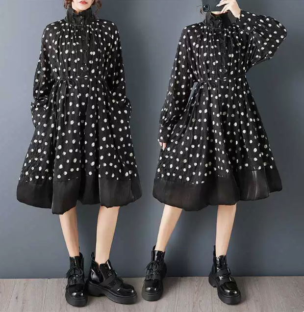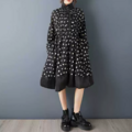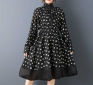 ★ビッグサイズ レディース 長袖 立ち襟ワンピース ゆったりシルエット 体型カバー 着痩せ 通勤 おしゃれ春夏