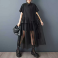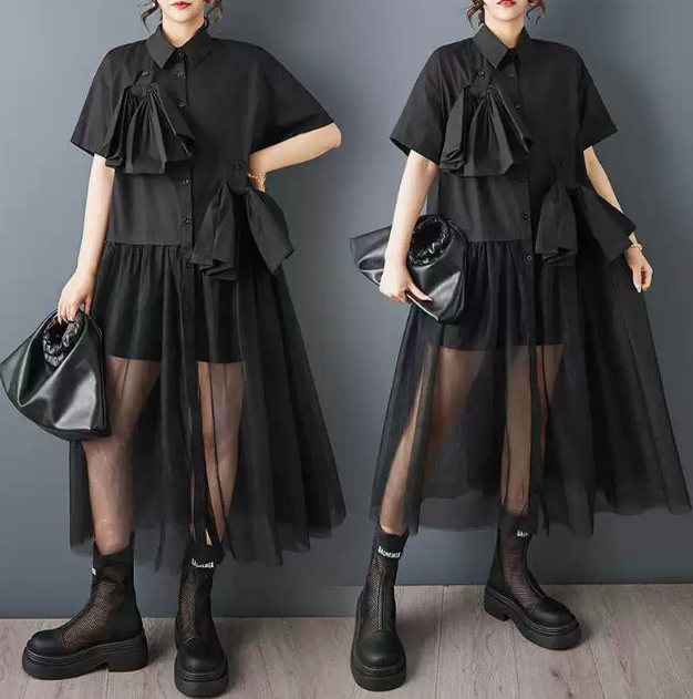 ★ビッグサイズ レディース 半袖 シャツワンピース ゆったりシルエット 体型カバー 着痩せ 通勤 おしゃれ春夏