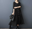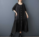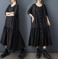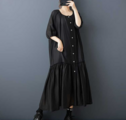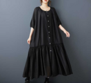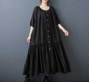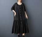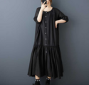 ★ビッグサイズ レディース 半袖 丸首ワンピース ゆったりシルエット 体型カバー 着痩せ 通勤 おしゃれ春夏