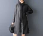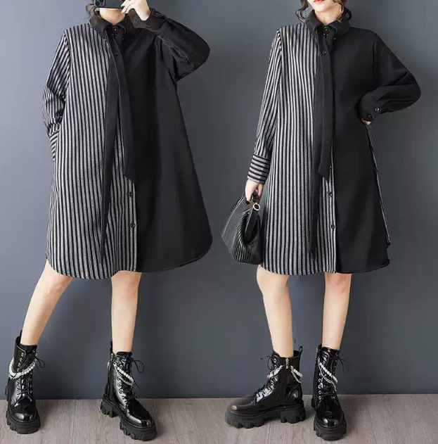 ★ビッグサイズ レディース 長袖 シャツワンピース ゆったりシルエット 体型カバー 着痩せ 通勤 おしゃれ春夏