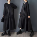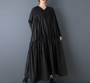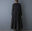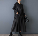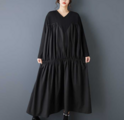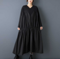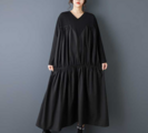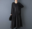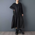 ★ビッグサイズ レディース 長袖 丸襟 ワンピース ゆったりシルエット 体型カバー 着痩せ 通勤 おしゃれ春夏