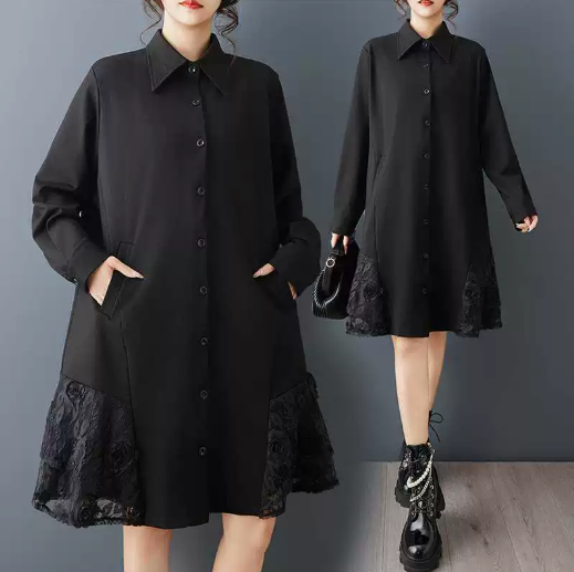 ★ビッグサイズ レディース 長袖 シャツワンピース ゆったりシルエット 体型カバー 着痩せ 通勤 おしゃれ春夏