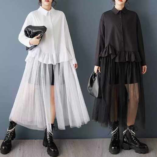 ★ビッグサイズ レディース 長袖 シャツワンピース ゆったりシルエット 体型カバー 着痩せ 通勤 おしゃれ春夏