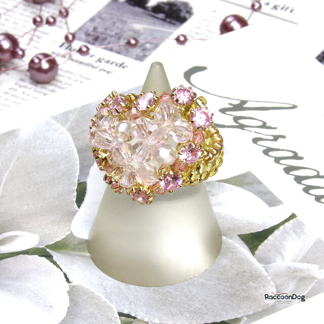 (新作)愛の煌めき♡ピンクのジルコニア大きい♡のリング〔ジルコニア/ガラスカットビーズ ビーズリング〕《ビーズアクセサリー》