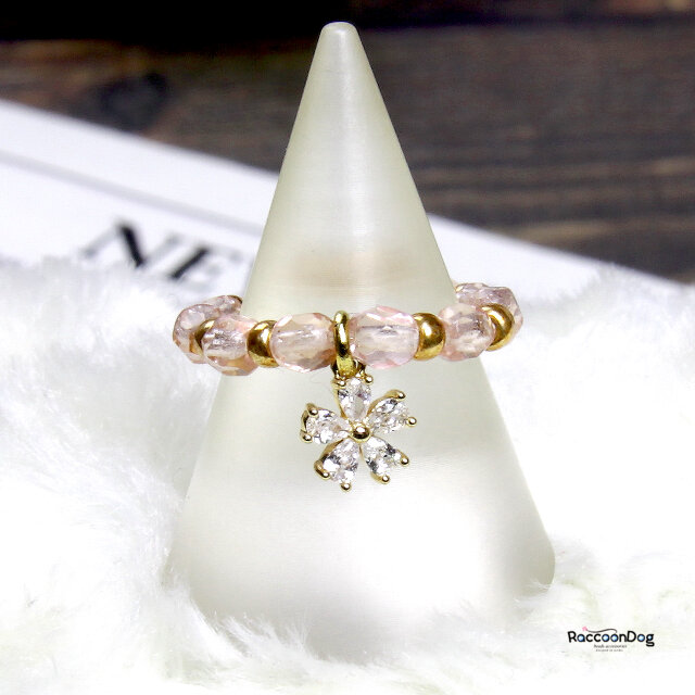 光の調べ♡ラインストーン小花の一文字リング〔ラインストーン/チェコビーズ ビーズリング〕《ビーズアクセサリー》