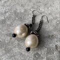 ダークな色合いのメタルにホワイトパールが映えるクラシカルな雰囲気のUSAヴィンテージピアス。揺れるたびに存在感を放ち、スタイリングにお洒落な雰囲気をプラスしてくれます。