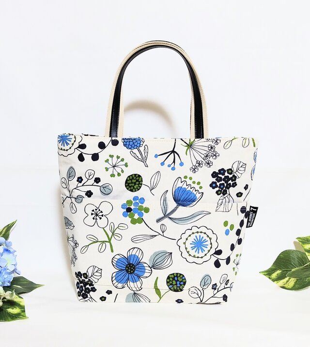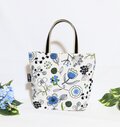 生成り地に北欧の可愛い花柄、綿リネン生地のお出掛けバックです。