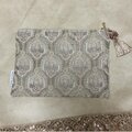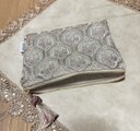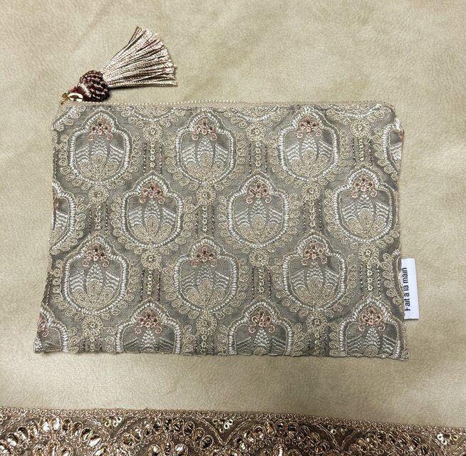 インド刺繍生地で作った、フラットな大きめファスナーポーチです。