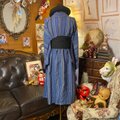 【 単衣着物リメイク ワンピース/ドレス/洗える化繊 名古屋帯サッシュベルト 縹色の深淵と縞模様パルス KW-1346】
