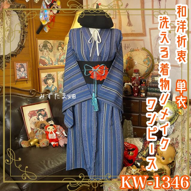 ①古着リメイク: 単衣着物 リメイク ワンピース